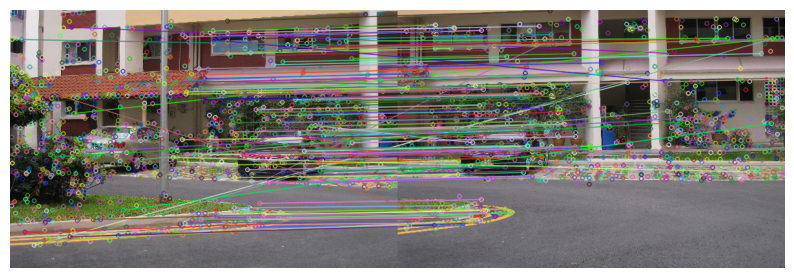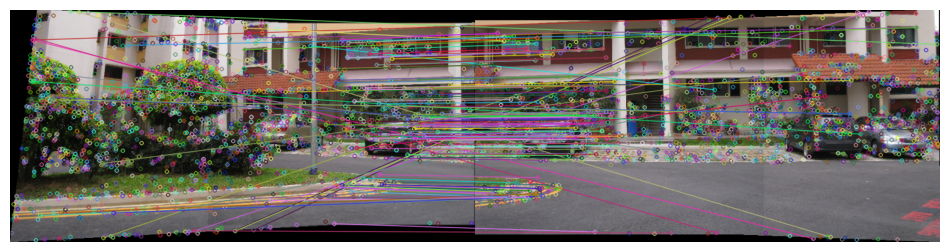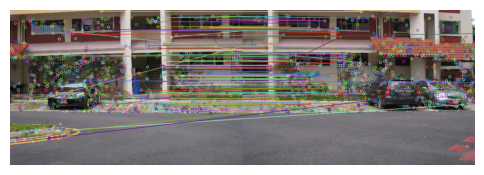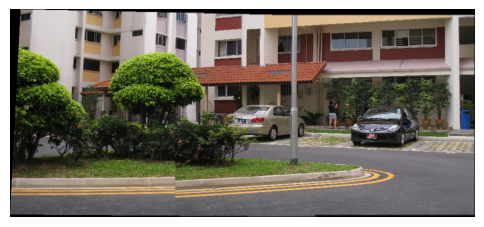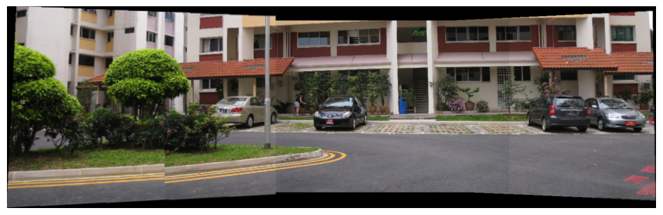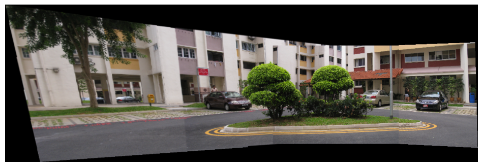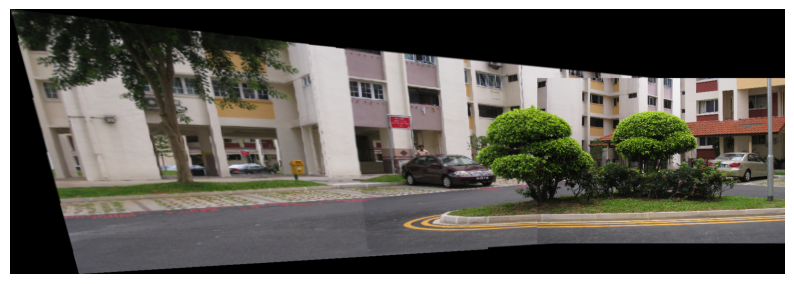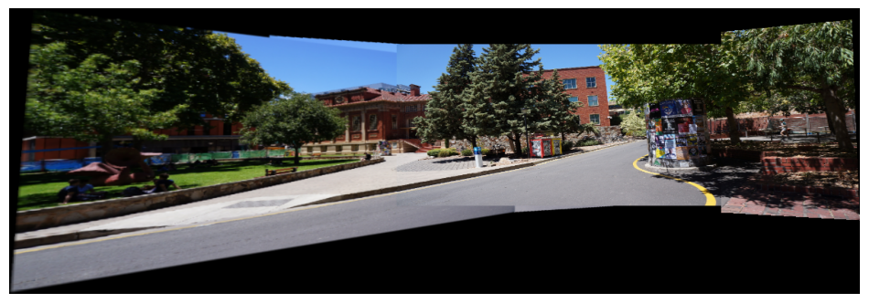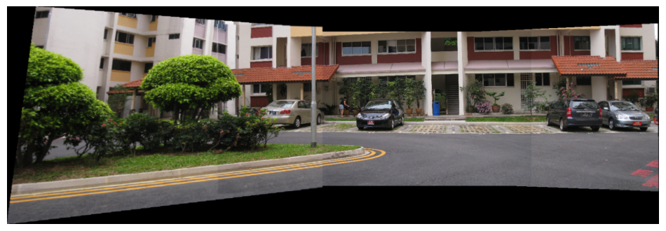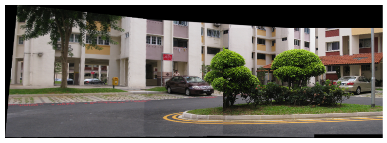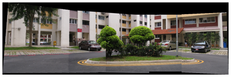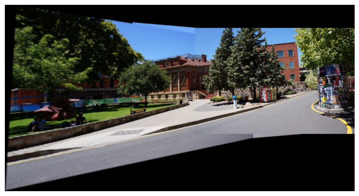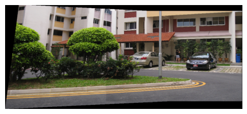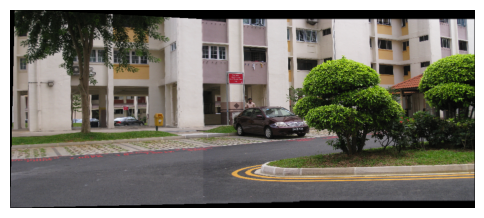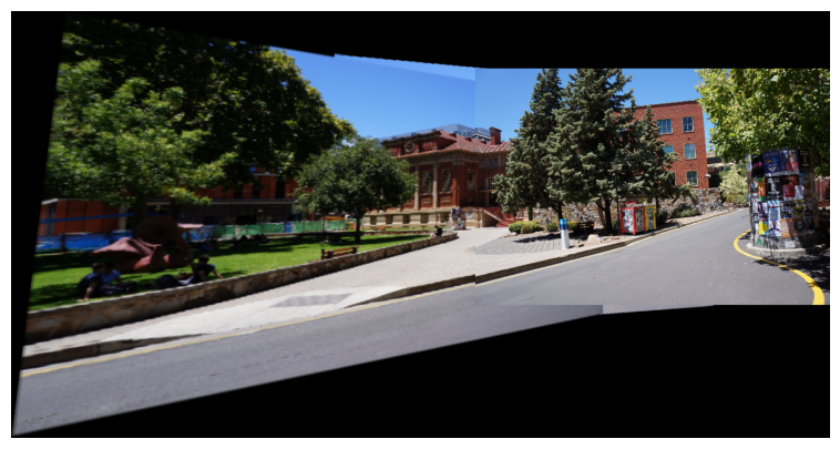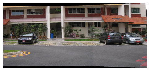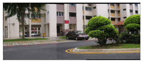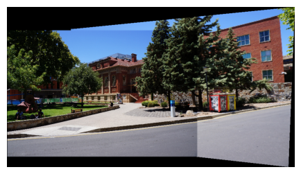 Step 4 Stitch the images used as input in step (3) using in-built command for homography estimation and compare it with the panorama obtained in step (3).
